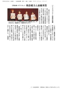 音楽学科の卒業生が北海道新聞に掲載されま…